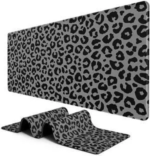 Extended Gaming Desk Mat, XXL Full Cover 31.5 x 11.8 Inches, Black Leopard Print