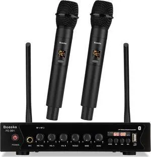 Rybozen Wireless Microphone Karaoke Mixer System, Dual Handheld Wireless Microphone for Karaoke, Smart TV, PC, Speaker, Amplifier, Church, Wedding - Support HDMI, AUX In/Out