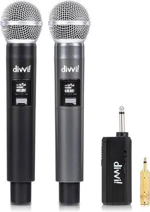 divvi! Wireless Microphone (Pair) - Fast, Stable Transmission - Up to 5 Hours Battery Life - Includes Adapter, Receiver, Carrying Case, Charging Cable & Microphone Head Cover (2)