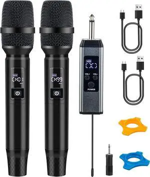 Wireless Microphones, Professional Dual Wireless Microphone with 240 ft Effective Range, 3ms Transmission Rate, Studio Grade Sound Pick Up Mic Head, Metal Body, Microphone for Singing, Speech