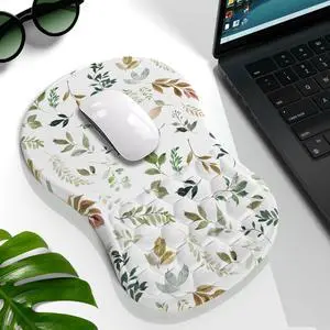 Cute Foliage Ergonomic Mouse Pad Wrist Support with Memory Foam Massage Bulge, Comfortable Gel Mouse Pad for Laptop Computer Mouse Pad with Wrist Rest Mouse Pads for Desk Office Home 12.2 X 7.9 in