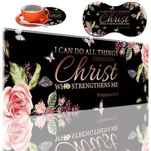 3-in-1 Large Mouse Pad Gaming Set (31.5 x 11.8 inch)+ Wrist Rest Pad + Coaster, Memory Foam Gel Wrist Rest Pad for Pain Relief, Stitched Edges, Non-Slip Table Mat, Philippians 4-13 Flowers