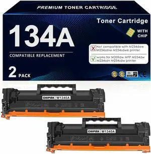 134X Black Toner Cartridge with Chip Compatible for HP 134X W1340X Toner Cartridge to Work with Laserjet M209dw 232dw 232dwc 233sdn 233dw 234dw 234sdw 236dw 236sdw Series Printer, 2-Pack