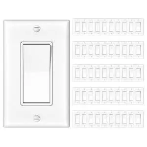 5601-2WM 15 Amp, 120/277 Volt, Decora Rocker Single-Pole AC Quiet Switch, Residential Grade, Grounding, 10-Pack, White