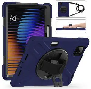 GooodiDEAR for Xiaomi Mi Pad 7/7 Pro Case, Shockproof Case with 360 Rotate Stand, Hand/Shoulder Strap, Pencil Holder, Protective Cover for Men, Women, Kids - Navy Blue