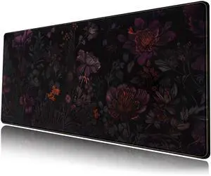 Dark Cottagecore Desk Mat Black Purple Flower XL Mouse Pad Large Gaming Mousepad Extended Vintage Aesthetic Desk Pad Keyboard Mouse Mat 31.5 x 11.8 in for Work Game Office Decor