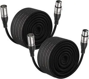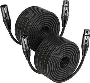 EBXYA 100Ft XLR Microphone Cables 2 Packs - Premium Balanced Mic Speaker Cable with 3 Pins XLR Male to Female 100 Feet, Black