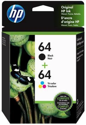 HP 64 2-pack Black/Tri-color Original Ink Cartridges, X4D92AN#140