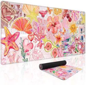 Baziabbo Desk Mat,XXL Extended Large Mouse Pad,Gaming Mousepad with Stitched Edge,Non-Slip Rubber Base Keyboard Desk Pad for Home Office Study Game(Y2-Pink)