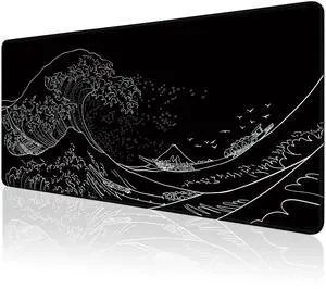 Gaming Mouse Pad for Desk,Large Mousepad Laptop,Black White Japanese Wave Anime Mouse Mat,Long XXL Waterproof Keyboard Pads,Big Non-Slip Computer Mousepads for Game Office Home31.5 x 11.9 in