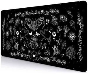 SXCKANG Goth Desk Mat, Black Occult Large Gaming Mouse Pad, Halloween Witchy Celestial Mushroom XXL Mousepad, Office Desk Decor Accessories Gifts