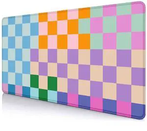 SXCKANG Colorful Checkered Desk Mat, Retro Purple Pink Blue Green XXL Large Mouse Pad, Aesthetic Big Computer Mouse Mat for Office, Rubber Base Mousepad Desk Pad with Stitched Edges, 35.4 x 15.7 in