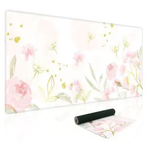 Baziabbo Pink Floral Desk Mat,XXL Extended Large Mouse Pad,Gaming Mousepad with Stitched Edge,Non-Slip Rubber Base Keyboard Desk Pad for Home Office Study Game