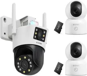 ZOSI 2 x C518 4K Indoor WiFi Pan/Tilt Security Camera with Auto Tracking and C298 Lite 4MP Dual-Lens(2MP+2MP) PT Camera, Auto Track, AI Detection, Night Vision, 2-Way Talk, Memory Card Storage