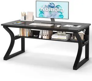 ZINUS Jennifer 55 Inch Black Frame/ Computer Workstation, Office Desk, Easy Assembly, Brown