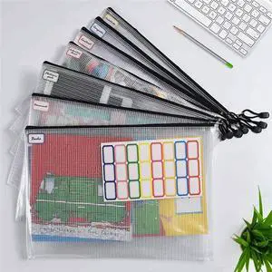60PCS A3 Folder, Information Zipper Bag Plastic Wallet Mesh File Bag Zipper Bag Zipper Wallet