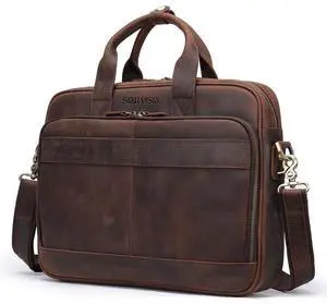 Augus Genuine Full Grain Leather Laptop Briefcase for Men 15.6 Inch Laptop Bag Messenger Tote Bags With YKK Zipper Black