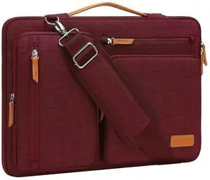 MOSISO 360 Protective Laptop Shoulder Bag,17-17.3 inch Computer Bag Compatible with MacBook, HP, Dell, Lenovo, Asus Notebook,Side Open Messenger Bag with 4 Zipper Pockets&Handle, Wine Red