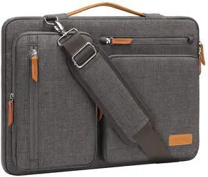 MOSISO 360 Protective Laptop Shoulder Bag,15 inch Computer Bag Compatible with MacBook Air M4 M3 M2/Pro A1990 A1707, Dell XPS Plus,Side Open Messenger Bag with 4 Zipper Pockets&Handle, Taupe Gray