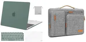 MOSISO Compatible with MacBook Air 13 inch Case 2022-2018 A2337 M1 A2179 A1932, Plastic Hard Shell&360 Protective Bag with 4 Zipper Pockets&Keyboard Cover&Screen Protector&Pouch, Midnight Green&Gray