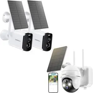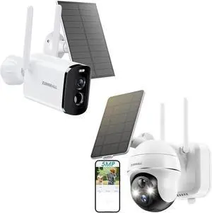 ZUMIMALL Solar Security Cameras Wireless Outdoor, Camera for Home Security with Color Night Vision, 2.4GHz WiFi, 2-Way Talk, Spotlight & Siren, IP66 Weatherproof, Compatible with Alexa