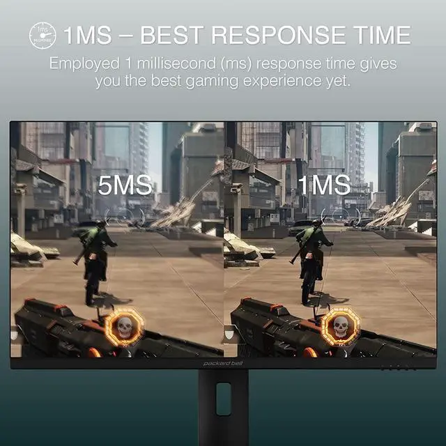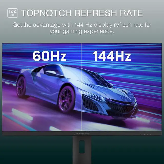 • Response Time/ Refresh Rate No lag, the Packard Bell 28 Gaming Monitor has a 1ms response time giving you a clear-cut picture with no lag or buffer. With a 144hz refresh rate the picture almost never shows a blur.