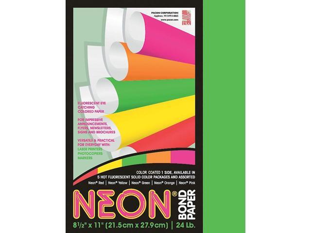 Pacon 104317 Neon Bond Paper Letter - 8.50" x 11" - 100 / Pack - Green