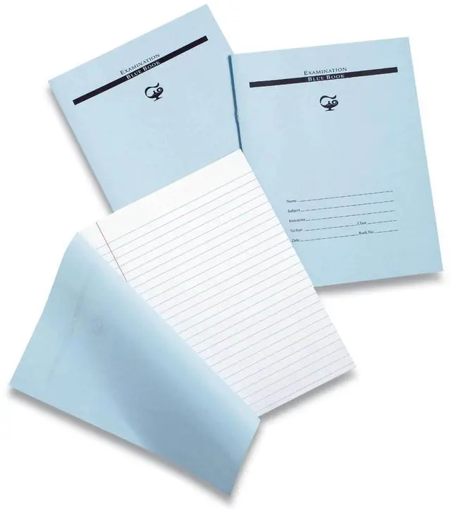 Traditional examination book is made with sulphite bond paper. Sheets are 3/8" ruled and include a red margin.