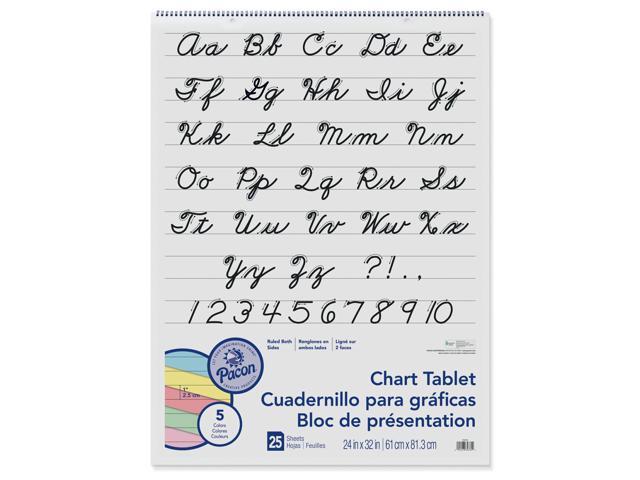 Pacon® Colored Paper Chart Tablet, 5 Assorted Colors, Cursive Cover, 1 in ruled 24" x 32", 25 Sheets