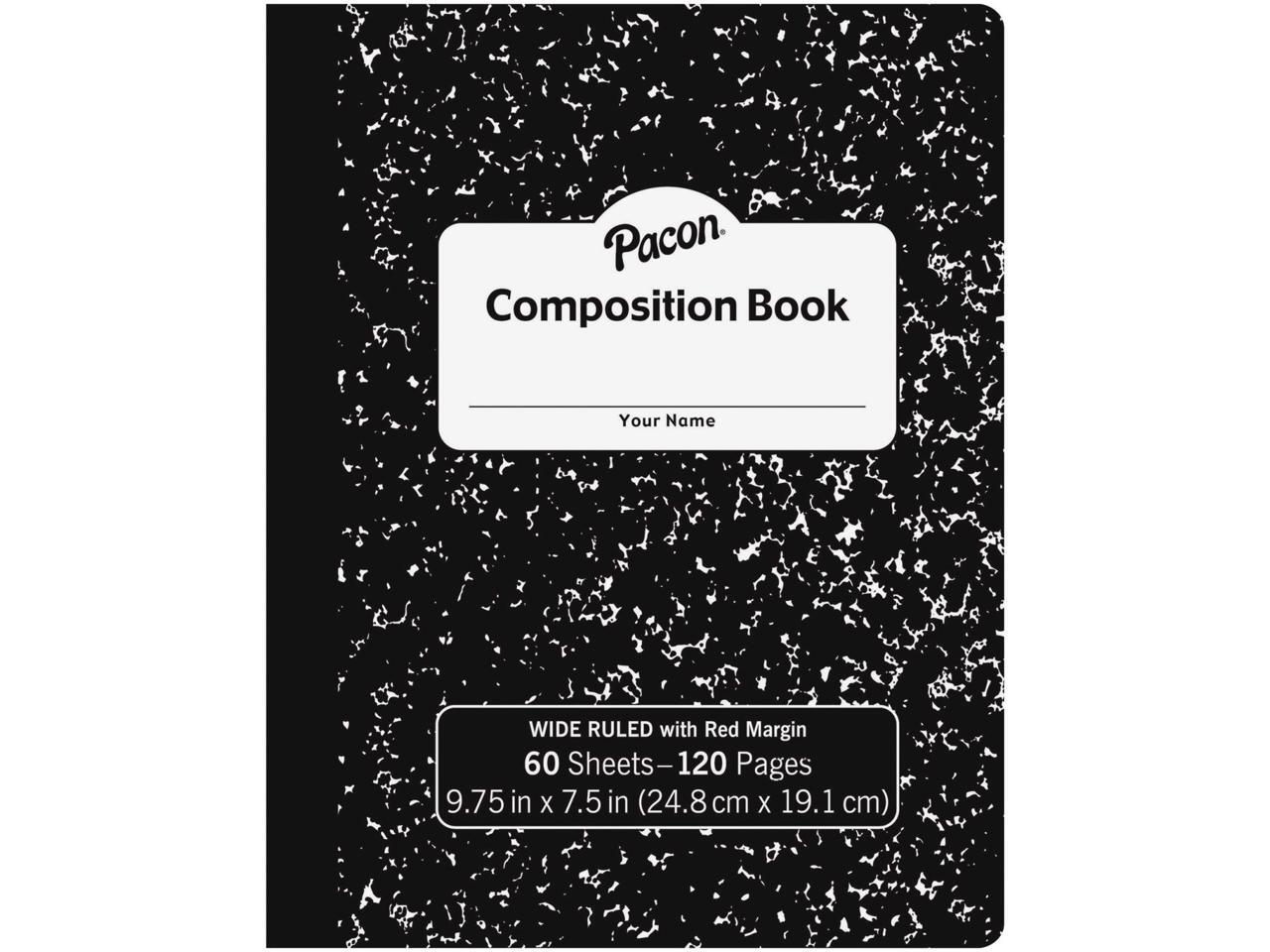 Pacon MMK37118 Composition Book, 60 Sheets - Wide Ruled - 0.38" Ruled 7 1/2" x 9 3/4" - Black Cover Marble - 1 Carton (72 pcs)