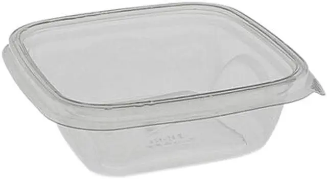 Constructed of flexible, hard-to-crack PET material. Made with post consumer recycled drink bottles which helps reduce landfill waste. Leak resistant bases are also stackable for convenient storage and easy transportation. Ideal for applications -20°F to 120°F. For use with EarthCoice PET lids. Food Container Type: Base; Material(s): PET; Food Container Material Type: Plastic; Capacity (Volume): 12 oz.