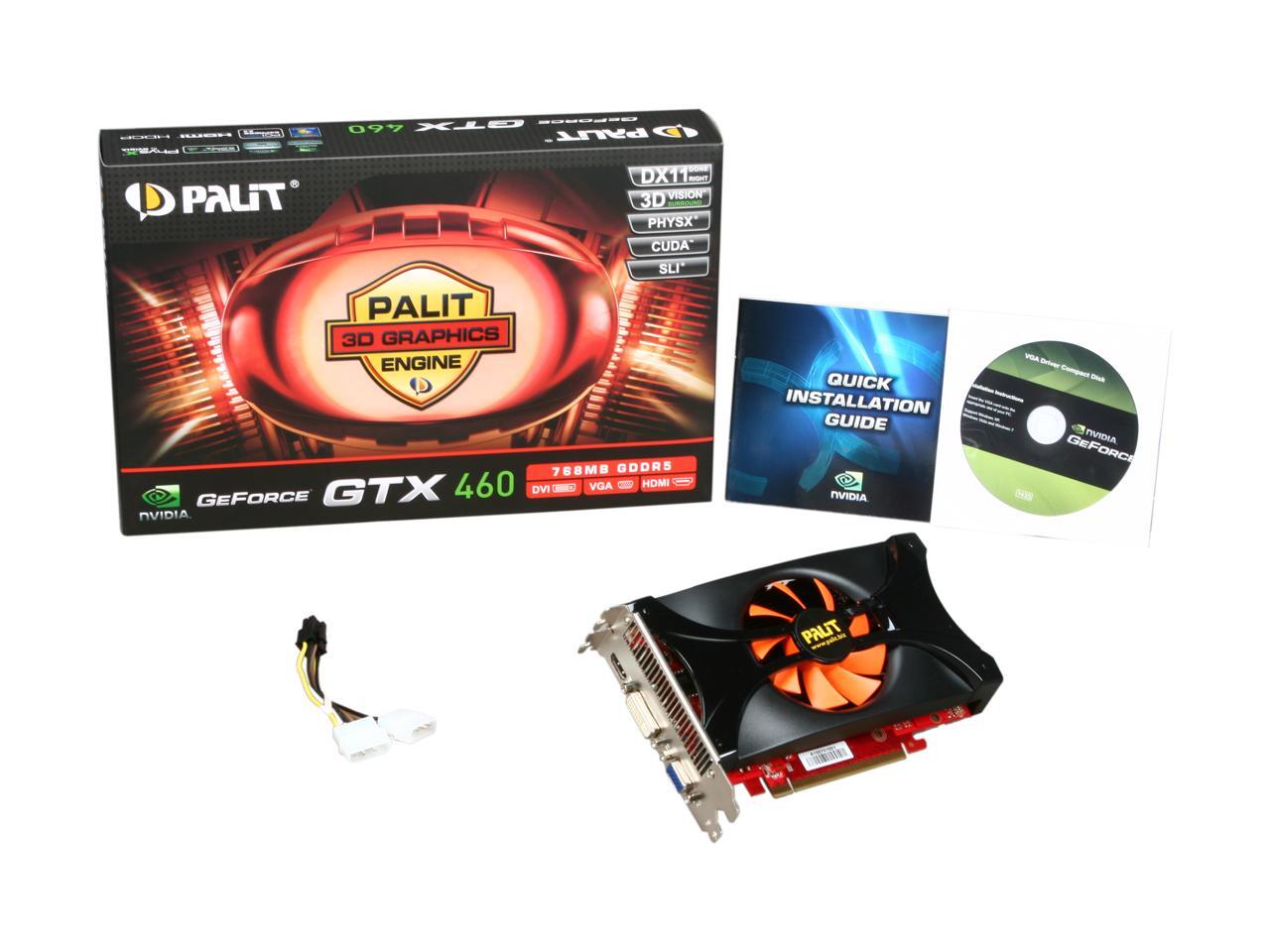 Palit GeForce GTX 460 (Fermi) DirectX 11 NE5TX460FHD79 768MB 192-Bit GDDR5 PCI Express 2.0 x16 HDCP Ready SLI Support Video Card
