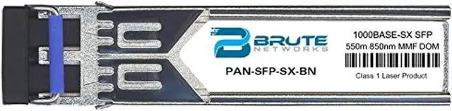 Palo Alto Networks PAN-SFP-SX - 1000BASE-SX 550m MMF 850nm SFP PAN-SFP-SX-BN is a 100% Palo Alto Networks compatible 1000BASE-SX 550m MMF 850nm SFP transceiver module.