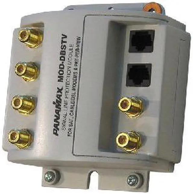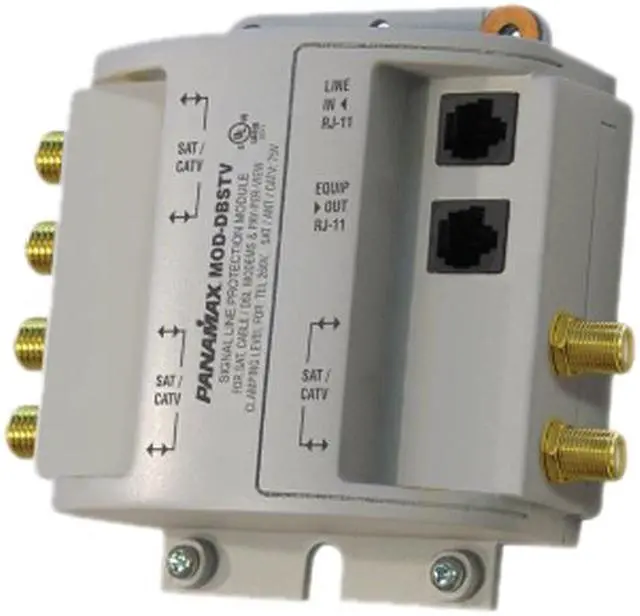 Designed to protect 2 satellite lines, 1 cable TV or antenna line, and 1 telephone line.