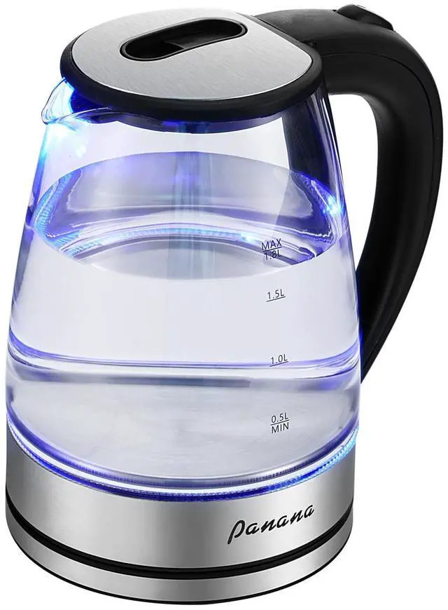 Electric Kettle, 1.8L Glass Kettles with Blue LED, 1200W, Built-In Mesh Filter, Fast Boil, Easy to Clean, Boil-Dry Protection, BPA Free