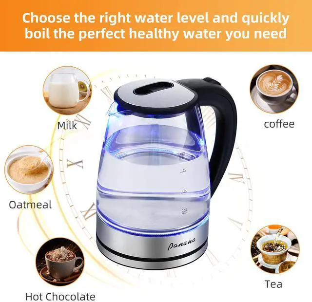Elegant Glass Design with Blue LED: The transparent glass body showcases a sleek, modern design that illuminates with a soft blue LED light while boiling, adding a stylish touch to any kitchen