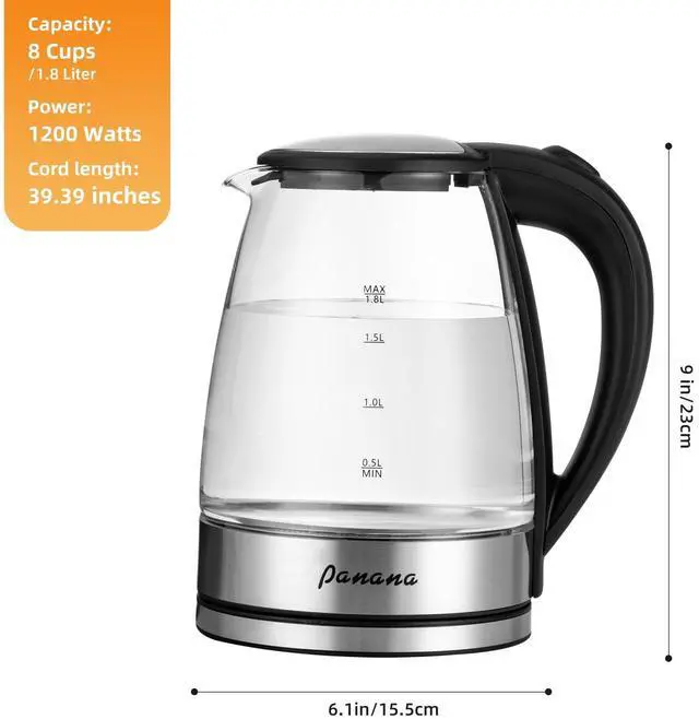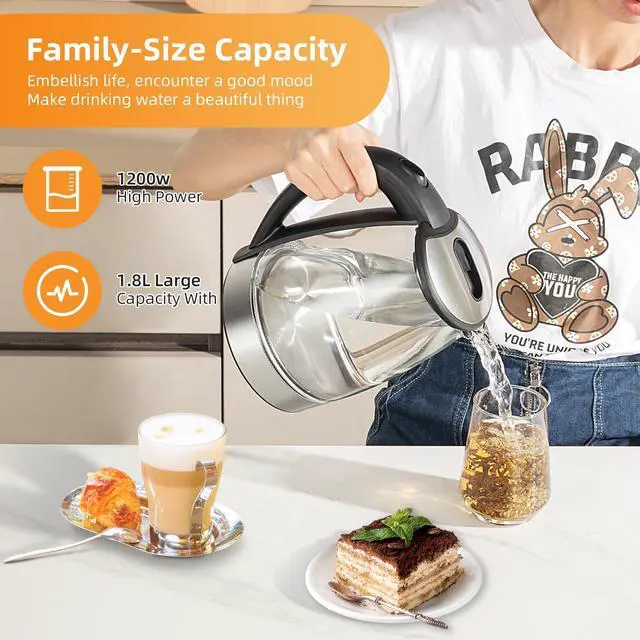 Fast Boil: With a powerful 1200W heating element, this 1.8L electric kettle heats water quickly, saving you time in the kitchen for morning teas, coffees, and instant meals.