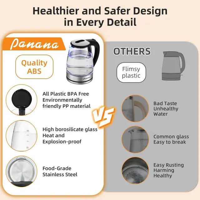 Safety Features: Made from BPA-free materials, this kettle also includes boil-dry protection, automatically shutting off when water levels are too low to ensure safe and worry-free use
