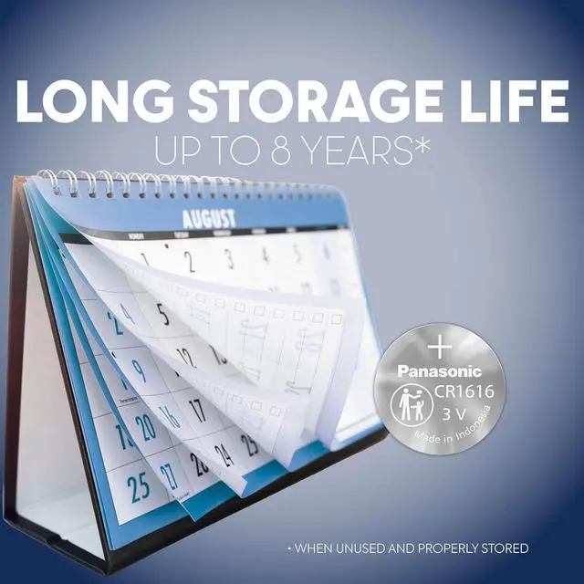 Panasonic CR1616 lithium coin battery cells are engineered to maintain high discharging performance with our proprietary sealing technologies, including both structure and materials. Our CR1616 3V lithium battery cells also meet or exceed IEC 60086-4, ANSI c18-3m part 2, and UL 1642 product and packaging safety compliance standards. This CR1616 button cell battery is used to power small electronic devices including car key FOBs, calculators, watches, fitness appliances, toys, and various medical and other devices. We proudly make these CR1616 batteries in our Panasonic Indonesia factory and they are packaged in our U.S.A. factory.