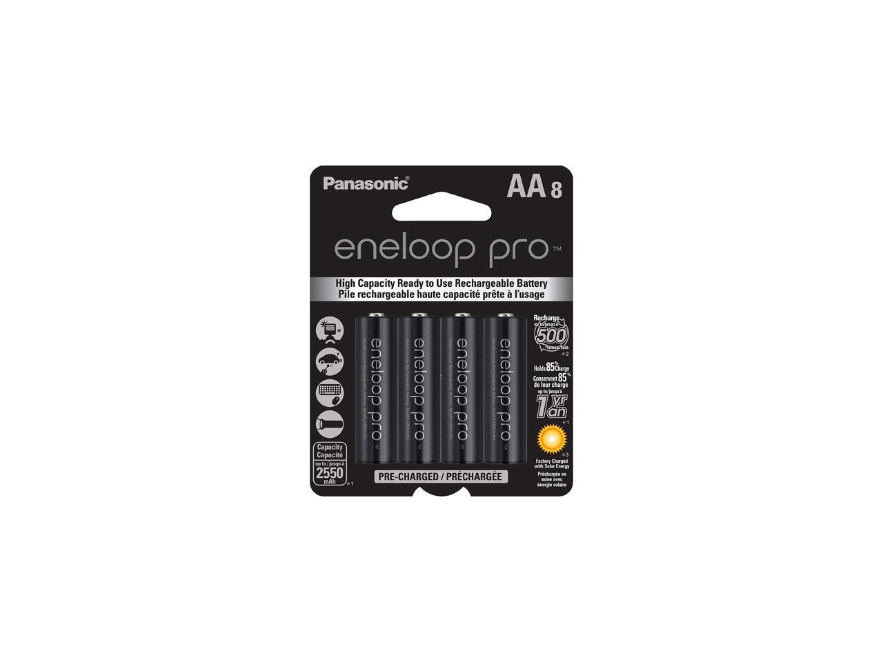 Panasonic Eneloop Pro AA 2550mAh 500 Cycle New High Capacity Ni-MH Pre-Charged Rechargeable Batteries 8 Pack