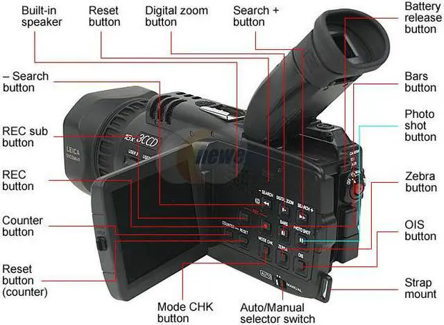 Newly developed wide-angle, extraordinarily quiet, 16x high speed optical zoom Leica Dicomar lens with low-dispersion glass reducing chromatic aberration & flare with OIS (Optical Image Stabilizer).
