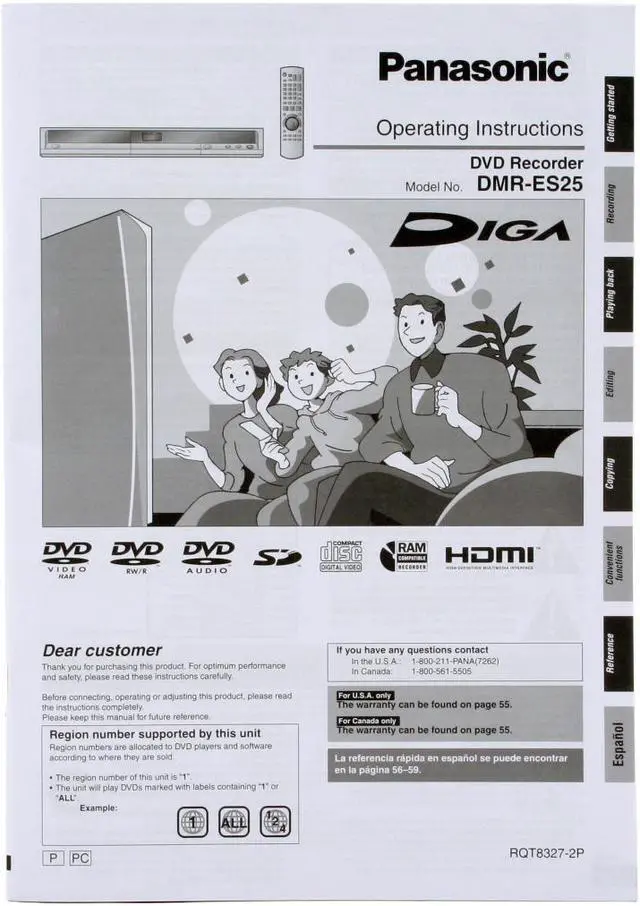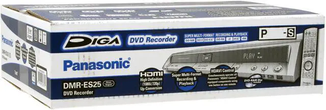 Super Multi-Format Recording and PlaybackThe Panasonic DMR-ES25S records to and plays back DVD-R/-RW/-RAM/+R/+RW discs and also supports playback of DVD-Video, DVD-Audio, DVD-R (dual layer), DVD+R (dual layer), CD, CD-DA and CD-R/RW (including MP3 and JPEG files). With a Panasonic DMR-ES25S, never think twice about what disc you need.