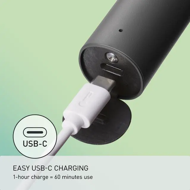 A versatile USB-C charger ensures that your shaver can be charged anywhere - whether you're at home or on-the-go. 60 minutes charge gives you a full hour of shave time too.