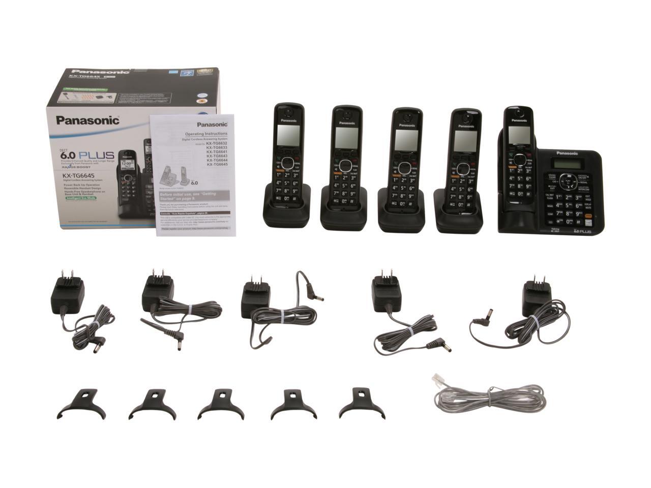 Panasonic KX-TG6645B 1.9 GHz Digital DECT 6.0 5X Handsets Cordless Phones Integrated Answering Machine