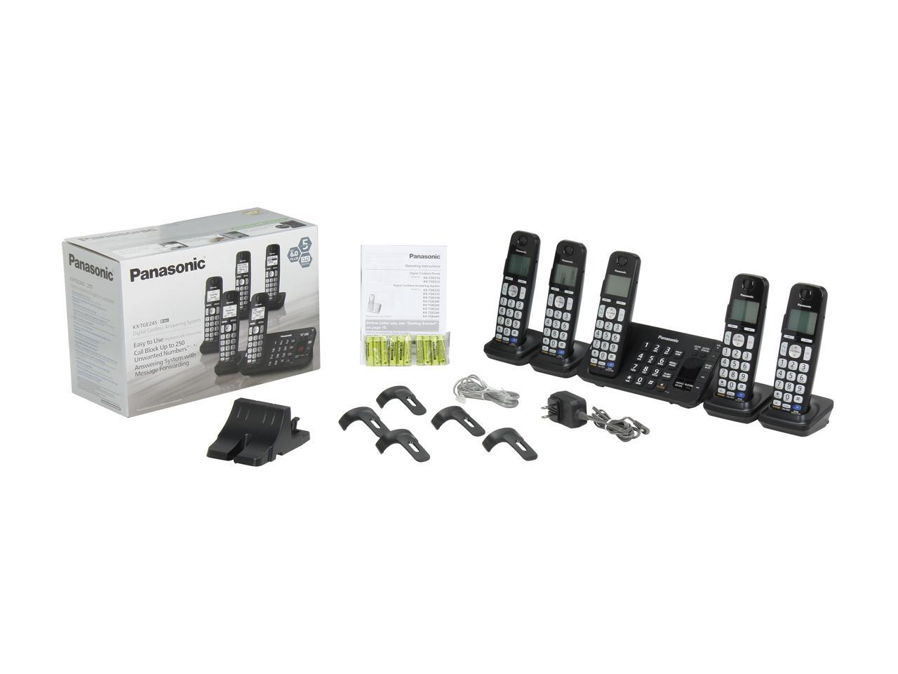Panasonic KX-TGE245B 1.9 GHz DECT 6.0 5X Handsets Expandable Digital Cordless Answering System with 5 Handsets Integrated Answering Machine