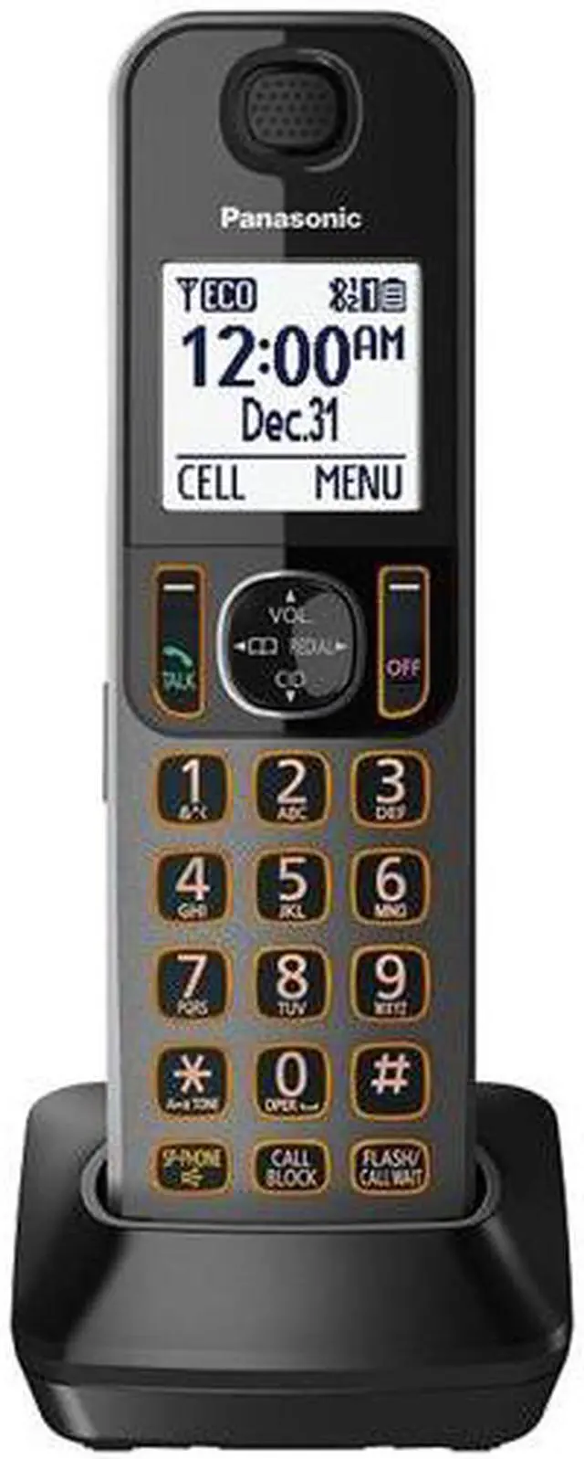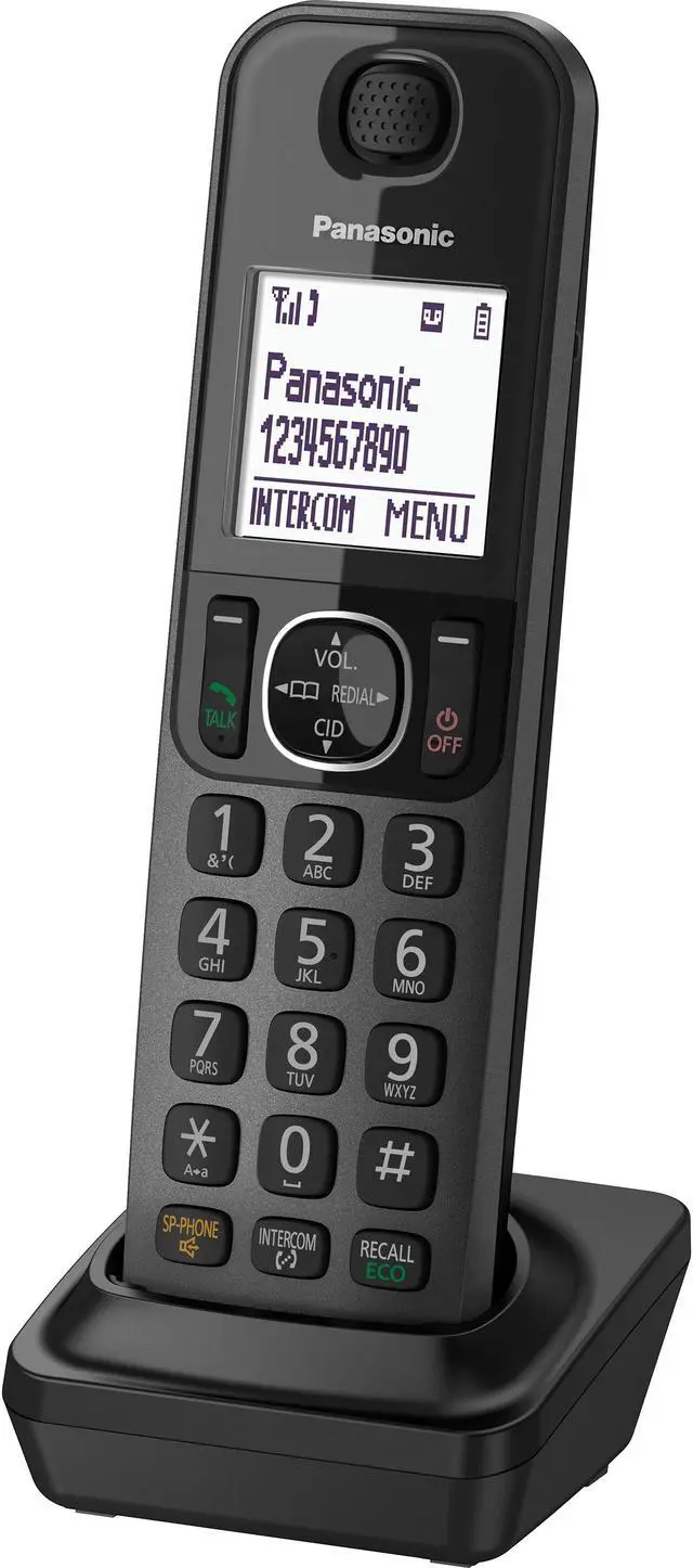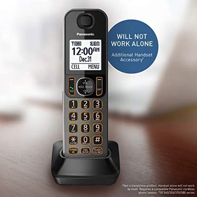The KX-TGFA30M is a replacement handset for KX-TGF380 series, and also works with any KX-TGF series. Pair it with your phone base, and enjoy crystal-clear phone calls wirelessly. It utilizes advanced Bluetooth technology to provide a wide wireless operation range without compromising voice quality. The large backlight LCD display and lighted keypad provide the ultimate in operation ease. The dedicated Call Block button helps you get rid of pesky calls, while the handset speakerphone allows for hands-free conversations.