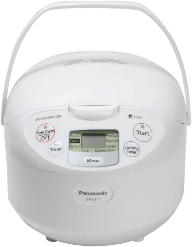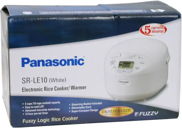 | Features | 1.0 Litre (5.5 Cup) Capacity New carrying handle Compact Design Advanced Fuzzy Logic Technology 13-Hour Preset Timer Rice Porridge Feature Steaming Feature Slow Cook Feature Quick Cook Feature Reheat Function Non-Stick Coated Pan Automatic Rewinding Cord Reel Deluxe Steaming Basket Included |
