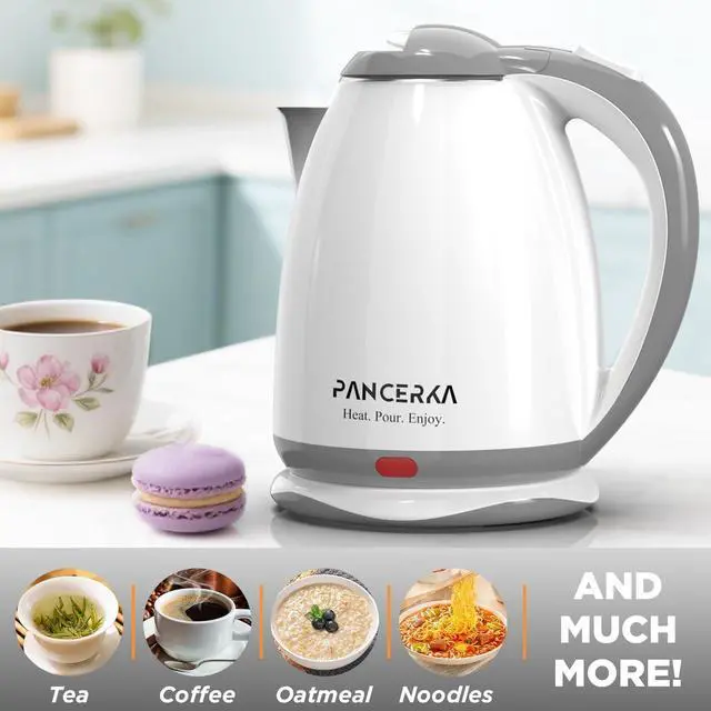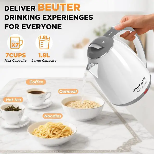 PANCERKA Electric Kettle, 1.8L Tea Kettle for Coffee & Tea, Fast Boil, Auto Shut-Off, White