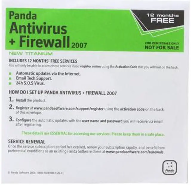 | Feature | The new Panda Antivirus + Firewall 2007 is much more than an antivirus. This solution will turn your PC into a fortress against hacker attacks and keep you safe from all types of viruses, spyware and online fraud. And now, for each Panda Antivirus + Firewall 2007 product purchase, you will obtain protection for up to 3 PC's! Also includes: Panda Antivirus Panda AntiSpyware Panda Firewall Panda TruPrevent |