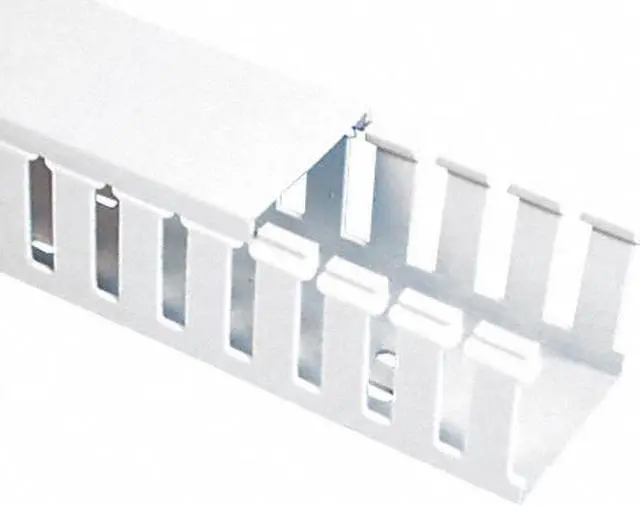 Wiring Duct, Wall Type Wide Slot, Width 2 1/4 in, Height 2 1/8 in, Slot Width 0.3 in, Material Lead-Free PVC, Color White, Mounting Style Screw Mount, Length 72 in, Slot Height 1.1 in, Slot-to-Slot Centerline 4/5 in, Standards CE Compliant, RoHS, UL Listed, Compatible Cover Style Snap-On, Nominal Height 2 in, Nominal Width 2 in. This item has been restricted from sale in the following state (s): []